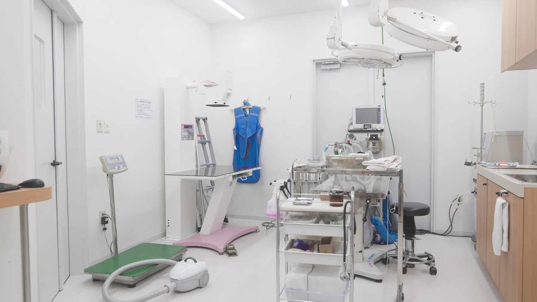 将来的に色々な機器を導入することを想定してできる限り広い空間を作ろうと設計しましたが、広すぎて少し寒いかもしれません(笑)。一般的な外科に加え、内視鏡や整形外科、腫瘍の温熱治療などもここで行うことができます。